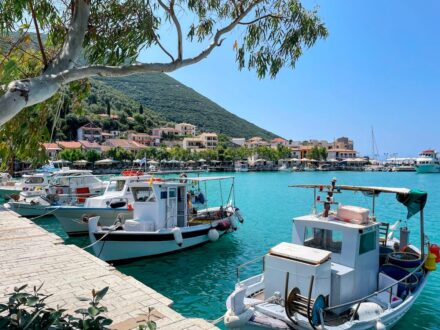 Vasiliki, located on the southern part of the island, is a charming seaside village famous for its relaxed atmosphere, picturesque harbor, and long sandy beach. Well known as one of Europe’s top destinations for windsurfing, Vasiliki also offers beautiful sunsets, waterfront tavernas, cafés, and easy access to some of Lefkada’s most stunning beaches and natural attractions, making it an ideal base for both adventure and peaceful holidays.